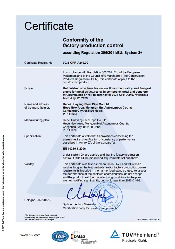 公司現有17條新型的自動化鋼管生產線,包括Φ73-660.4高頻直縫焊鋼管生產線14條、Φ406.4-Φ1422.4直縫雙面埋弧焊鋼管生產線3條,并配備有一條防腐生產線,可進行3PE、2PE、FBE、2PP、3PP防腐處理,同時還可提供鋼管深加工服務。公司擁有先進的理化實驗室,可承擔鋼管的各項物理及化學檢測與試驗。公司先后取得了ISO9001質量管理體系認證、ISO14001環境管理體系認證、ISO45001職業健康安全管理體系認證、特種設備制造許可證、API5L和API2B認證證書、歐盟CE認證、俄羅斯GOST認證、法國船級社(BV)工廠認證、科威特石油入網認證、中海油入網證、安全生產標準化二級企業等標準質量體系認證。